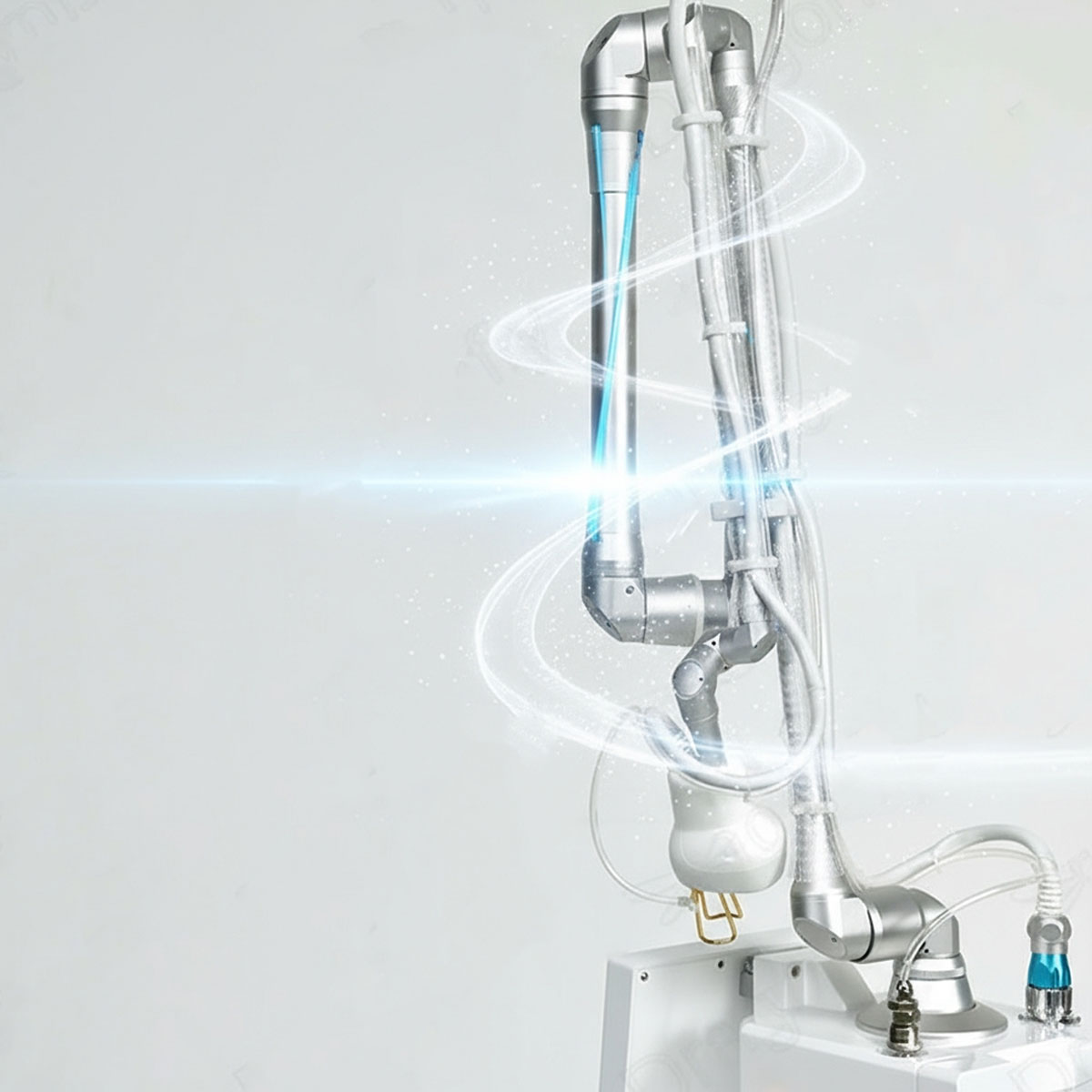 Laser frakcyjny Air Essence™ Aramis A1 został wyposażony w koreańskie, siedmioprzegubowe ramię prowadzące światło, które gwarantuje najwyższą precyzję pracy. Dzięki elastycznej konstrukcji i szerokiemu zakresowi obrotu ramię umożliwia płynne manewrowanie głowicą w każdym kierunku, zapewniając dokładne prowadzenie wiązki lasera.