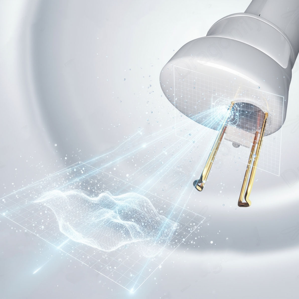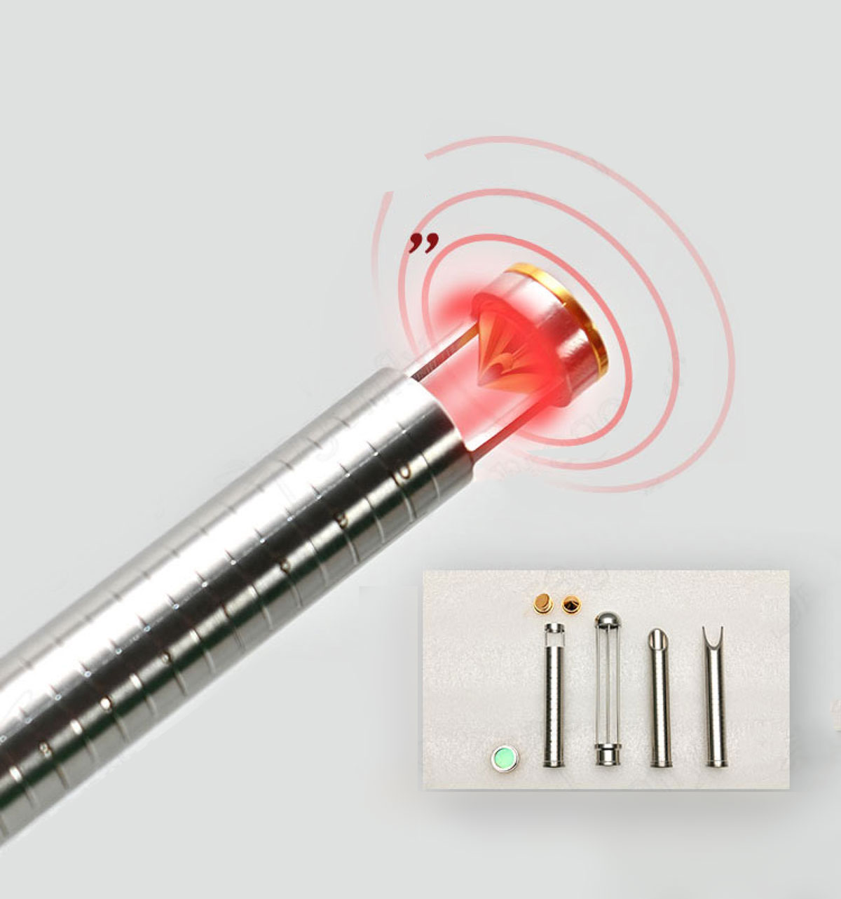 Specjalna konstrukcja końcówki oparta na zasadzie odbicia światła zapewnia precyzyjne, równomierne podgrzewanie tkanek, co skutkuje ich naturalnym obkurczeniem i pobudzeniem kolagenu.