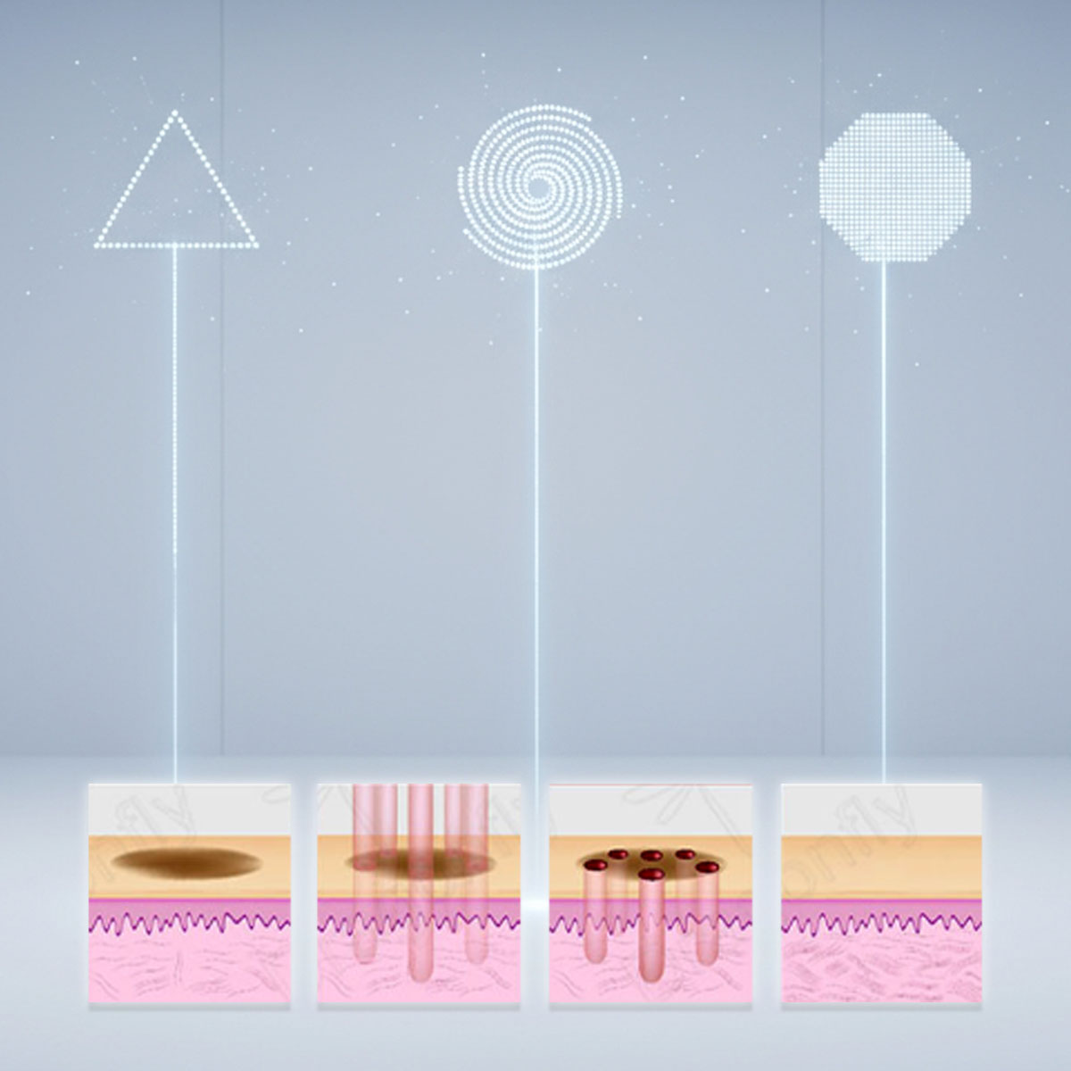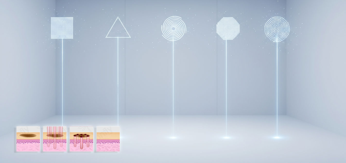 Laser frakcyjny Air Essence™ Aramis A1 oferuje aż 7 różnych kształtów skanowania, dzięki czemu możliwe jest precyzyjne dopasowanie wiązki do obszaru i rodzaju zabiegu.