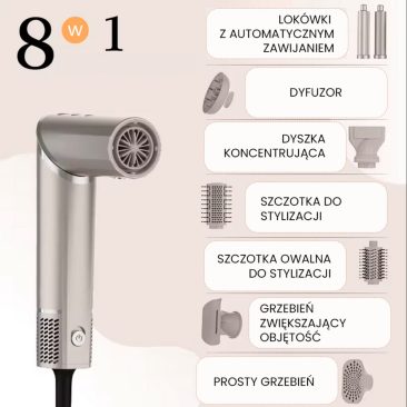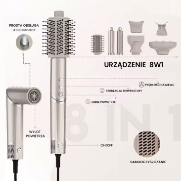 Zapoznaj się z akcesoriami dołączonymi do zestawu – pozwolą Ci nakręcać włosy, wygładzać je, modelować, zwiększać ich objętość oraz prostować. Pełna gama możliwości! Szybka i łatwa stylizacja niezależnie od typu Twoich włosów.