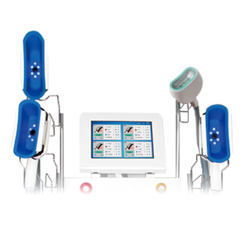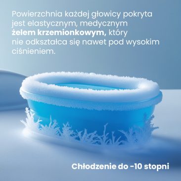 Cryo XCool Plus został wyposażony w 4 wymienne głowice o różnych rozmiarach, co pozwala na precyzyjne dopasowanie terapii do konkretnych partii ciała.