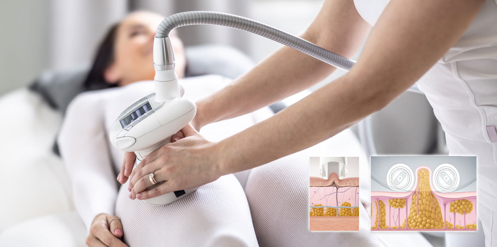 Technologia RF precyzyjnie podgrzewa włókna kolagenowe i tkankę tłuszczową, pobudzając ich obkurczanie i przebudowę. Pod wpływem temperatury dochodzi do lipolizy – rozkładu tłuszczu na glicerol i kwasy tłuszczowe, które są następnie usuwane przez układ limfatyczny.