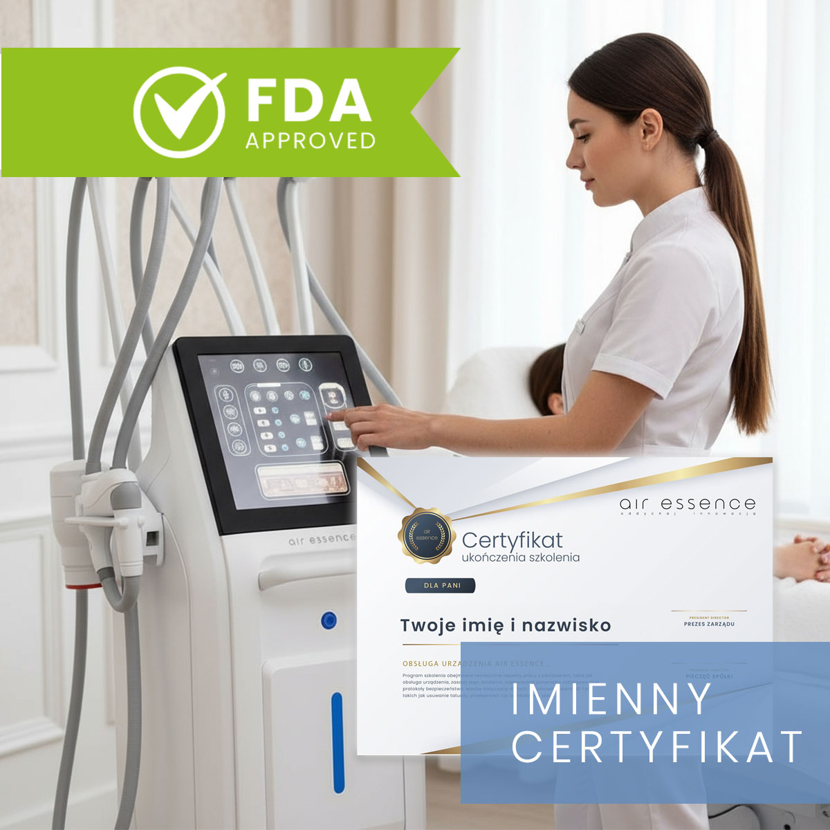 Dodatkowo urządzenie posiada również certyfikację FDA, dzięki czemu masz pewność, że inwestujesz w sprzęt sprawdzony i dopuszczony do użytku na rynkach światowych. To gwarancja niezawodności, bezpieczeństwa dla Twoich klientów i pewności w codziennej pracy.