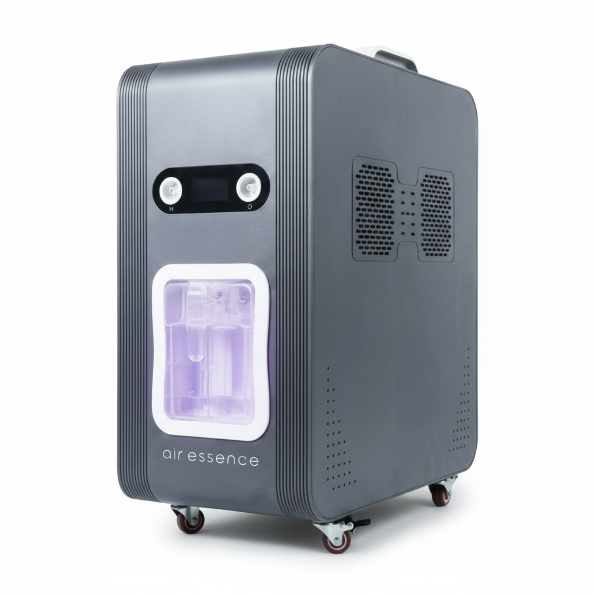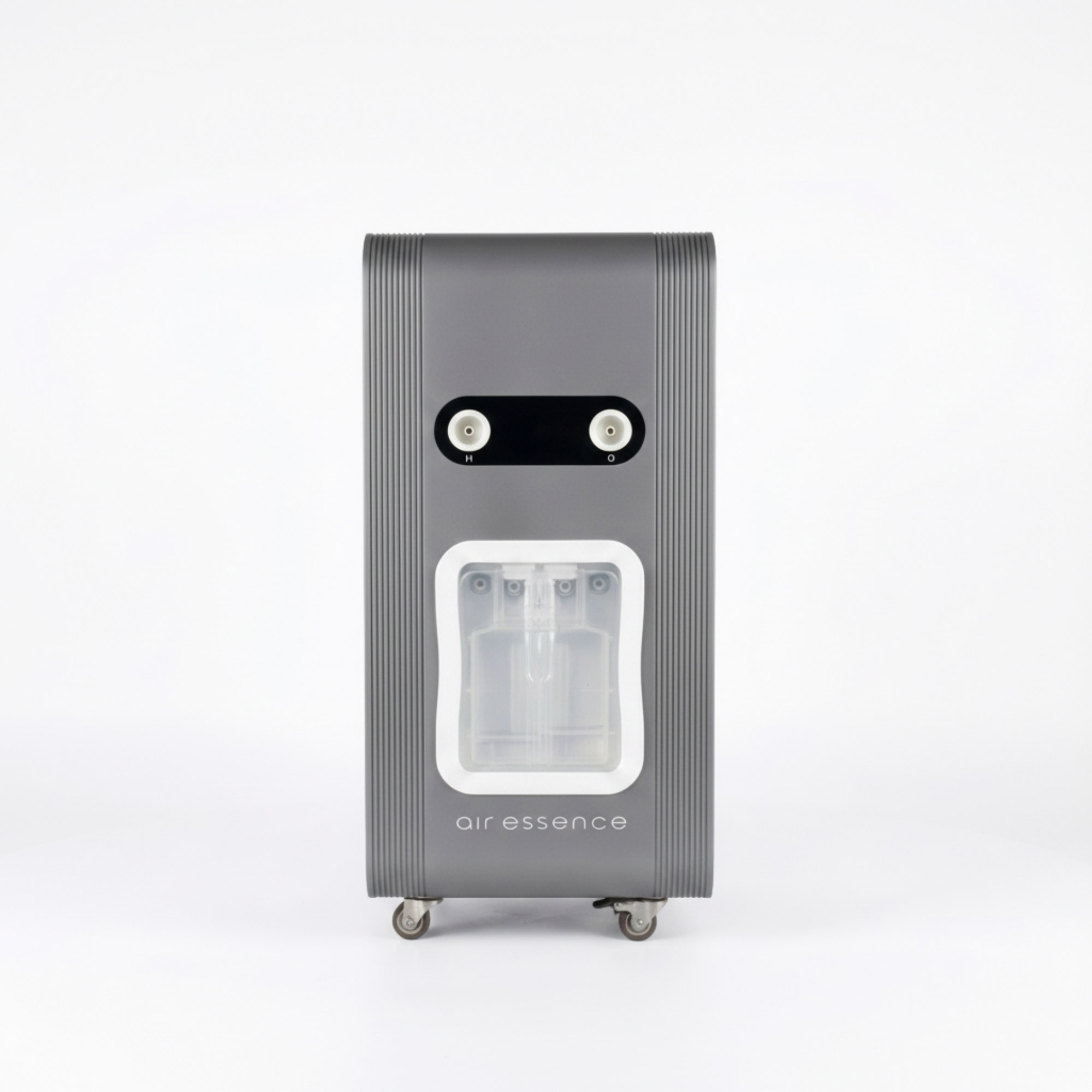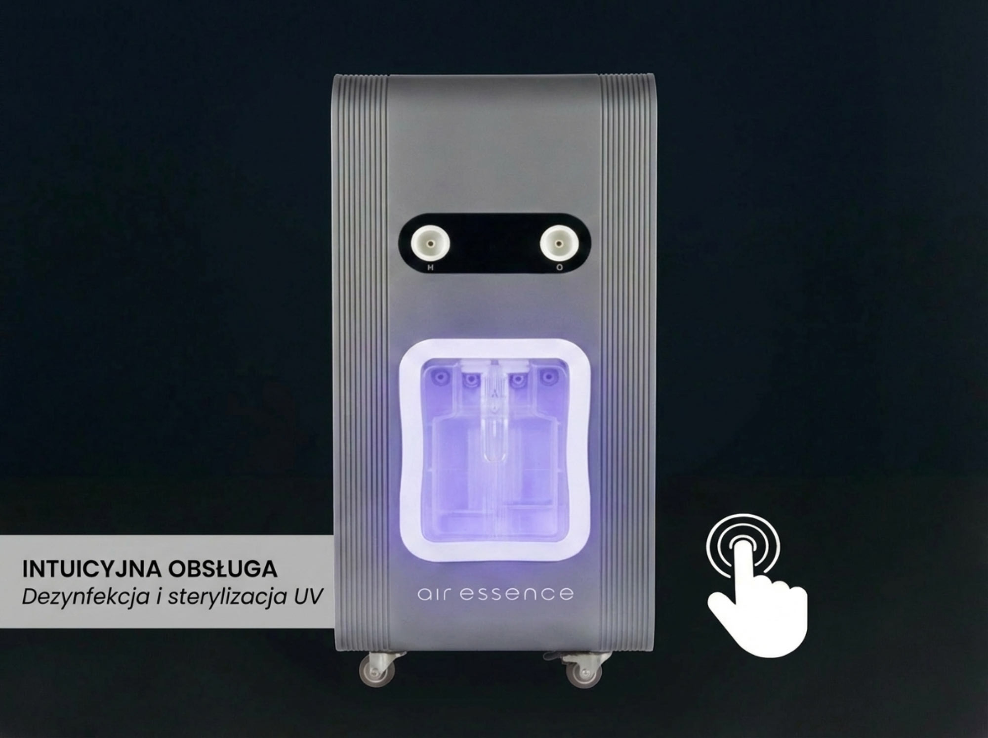 - Elektroliza rozdziela cząsteczki wody (H₂O) na: wodór (H₂) – który jest wdychany podczas inhalacji i tlen (O₂) – który zazwyczaj jest odprowadzany na zewnątrz.
