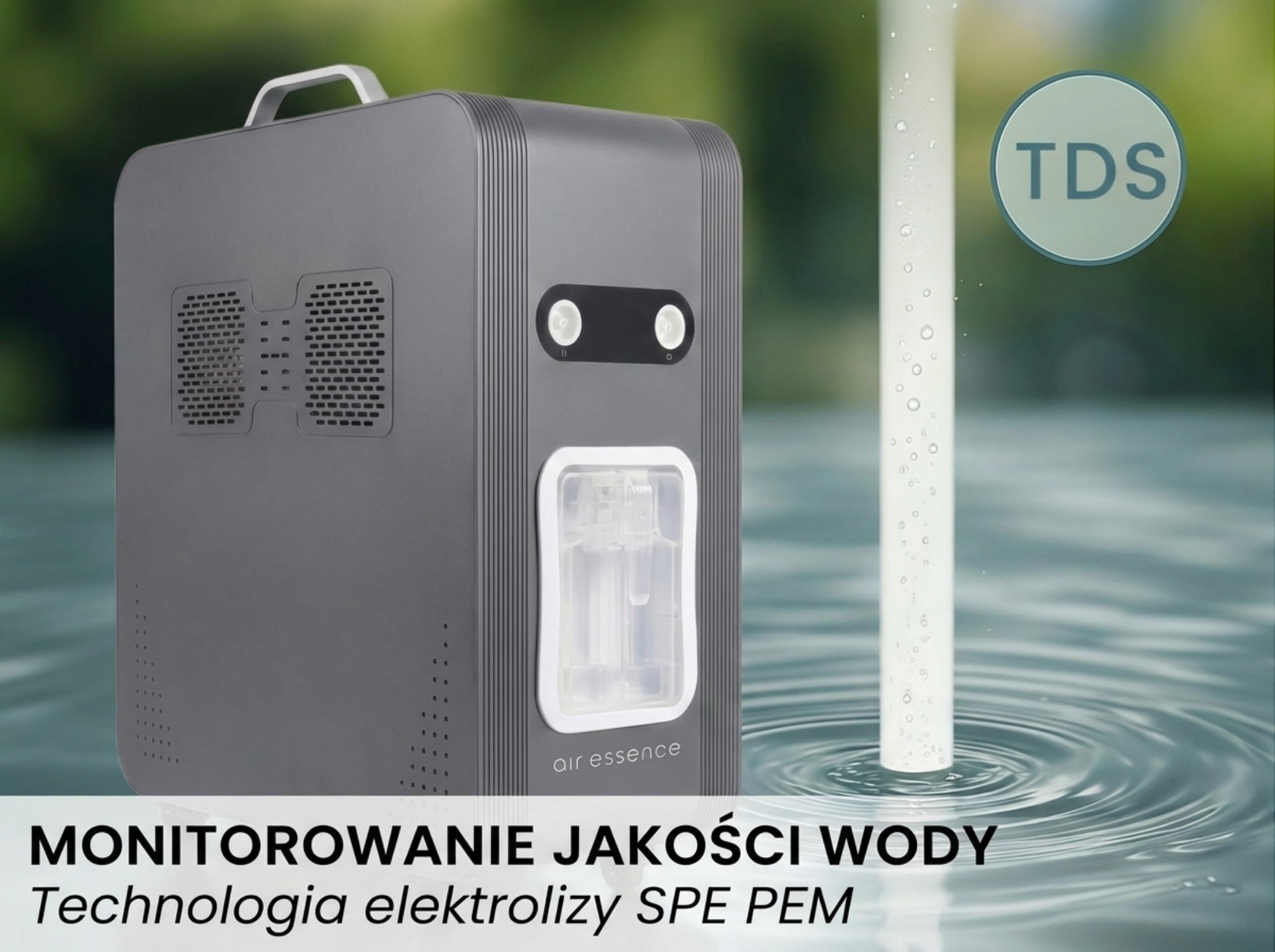 System TDS kontroluje jakość wody używanej do produkcji wodoru. Dzięki temu użytkownik ma pewność, że w procesie nie uczestniczą niepożądane zanieczyszczenia, co wpływa na czystość powstającego gazu i bezpieczeństwo inhalacji.
