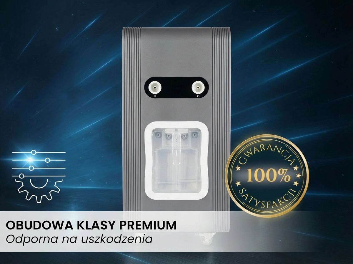 Dzięki membranie wymieniającej protony, urządzenie oddziela wodór od tlenu z najwyższą precyzją. Efekt? Oddychasz tylko tym, co najcenniejsze – czystym, aktywnym wodorem, który wspiera regenerację, redukuje stres oksydacyjny i poprawia ogólne samopoczucie.