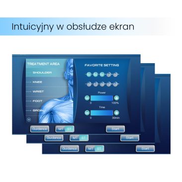 - Tryby pracy — przyciski MT (Magneto Therapy) i ST (Super Transduction) sugerują wybór różnych trybów terapii.