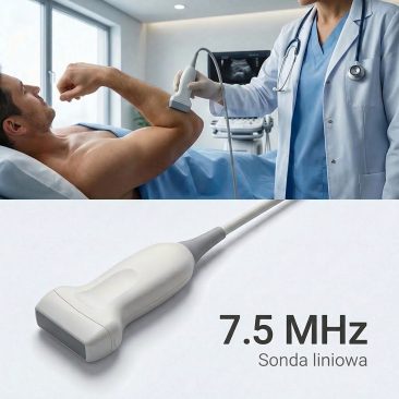 Głowica liniowa (6.0–12.0 MHz) – idealna do badań naczyń, tkanek powierzchownych i małych narządów, z zakresem głębokości do 128 mm.