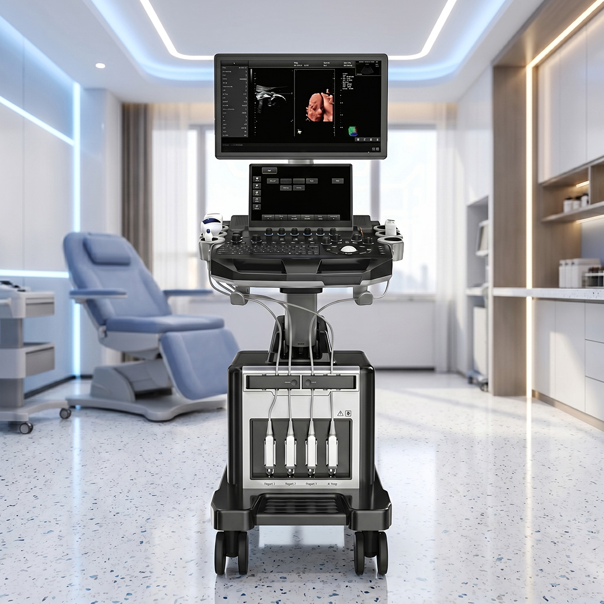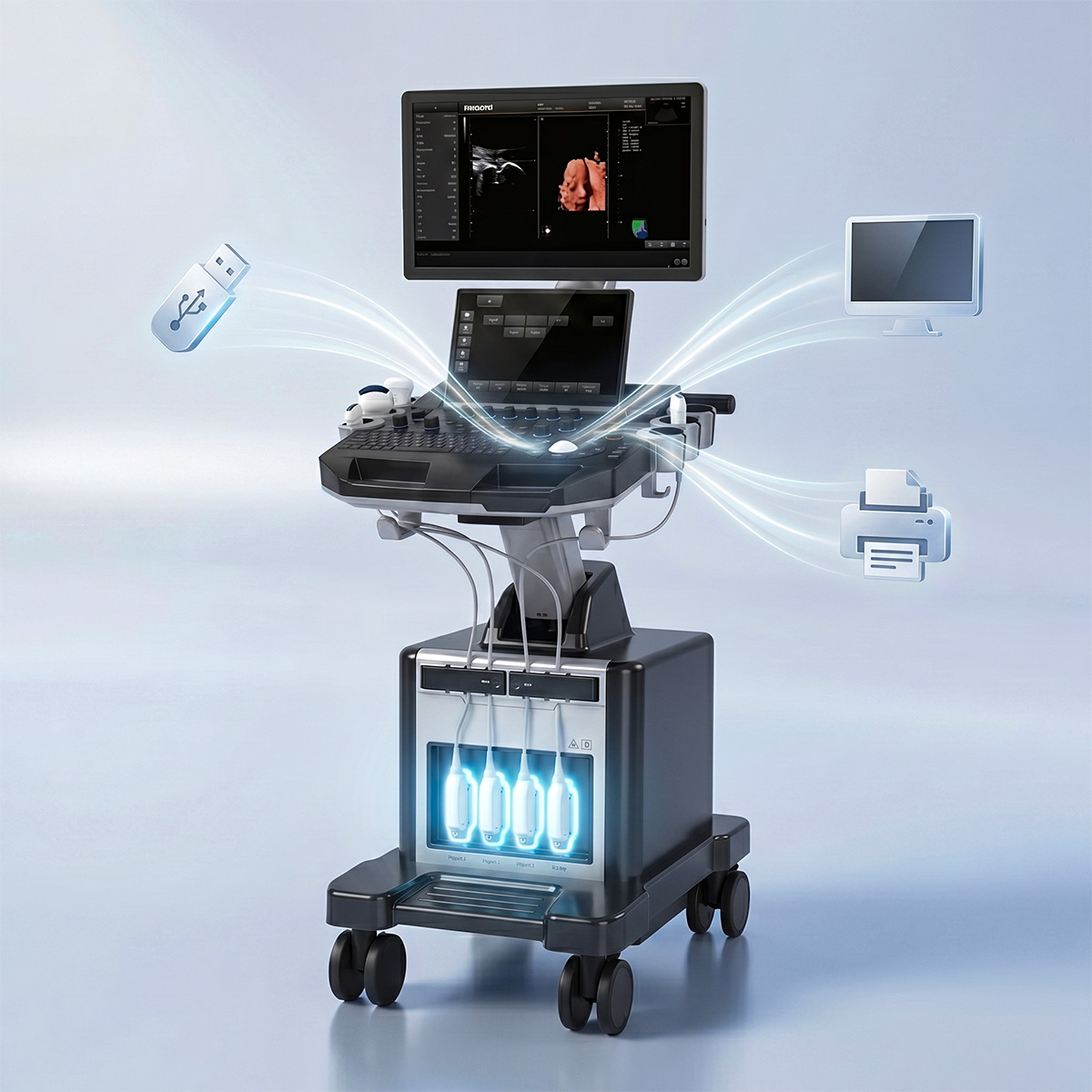 Aparat medyczny, zaprojektowany z myślą o większej efektywności, wygodzie i płynnej pracy podczas profesjonalnych badań ultrasonograficznych
