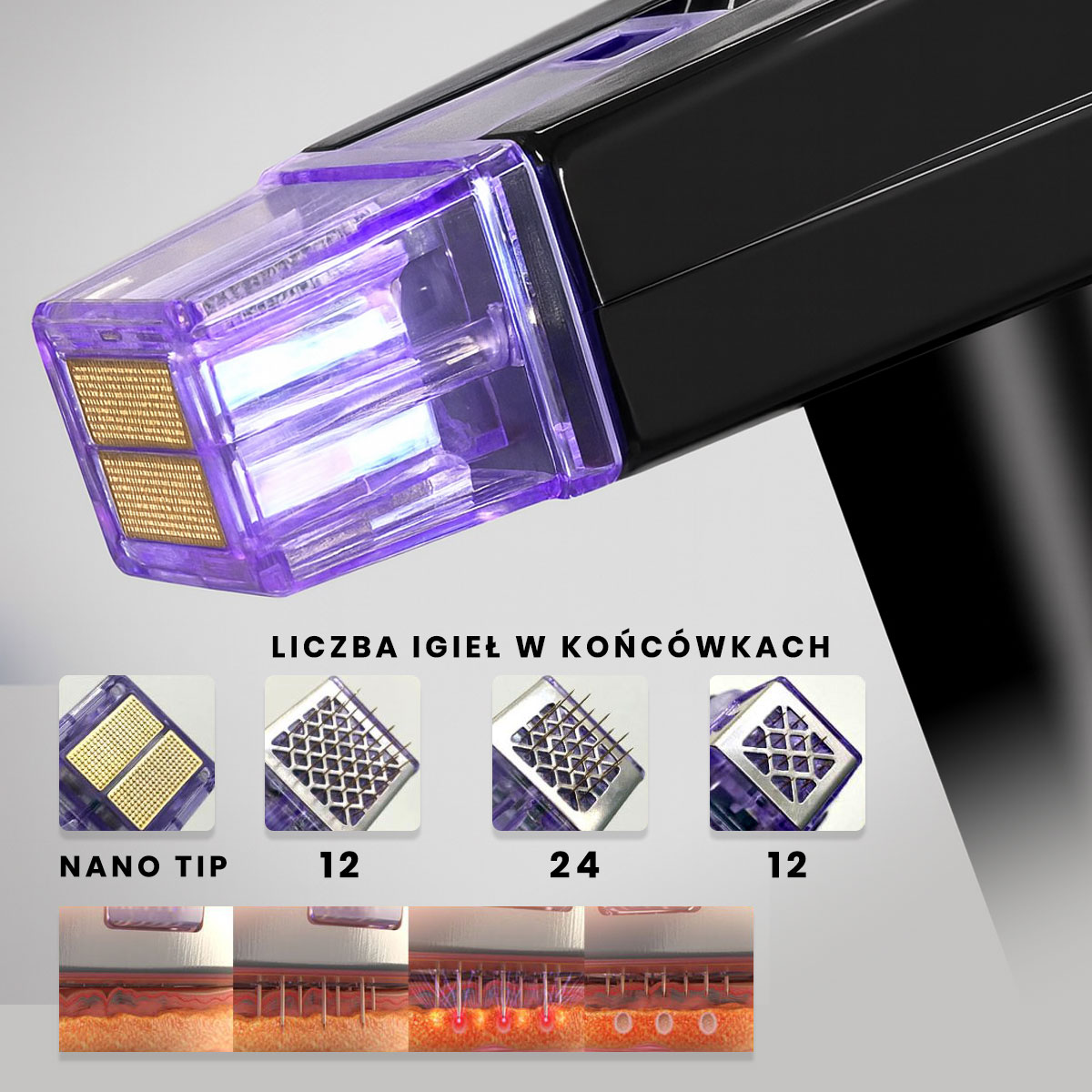 - Nano Tip – nieinwazyjna końcówka, delikatna dla powierzchni skóry, nie wymaga czasu rekonwalescencji.