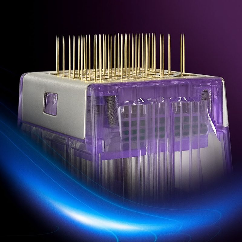 Nowoczesna izolowana końcówka z wyjątkowo ostrymi, pozłacanymi igłami o stożkowym kształcie (0,22 mm) zapewnia niezwykle precyzyjne działanie bez uszkadzania naskórka. Dzięki mikroskopijnemu rozmiarowi (0,1 mm) zabieg jest praktycznie bezbolesny i bezkrwawy, a jednocześnie wyjątkowo skuteczny. Takie rozwiązanie znacznie zwiększa bezpieczeństwo, komfort i efektywność terapii.