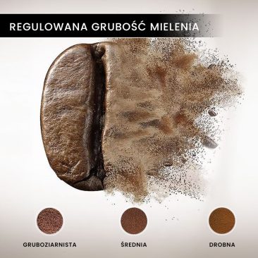 - Zbiornik na kawę ziarnistą: 2,7L + 1 kg