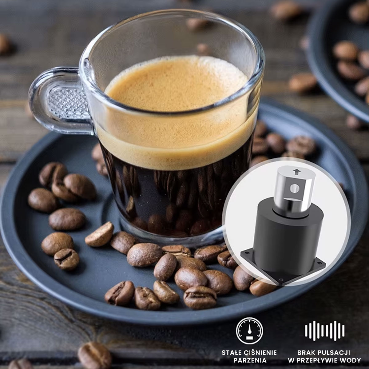 ✔ Stabilna jakość każdego napoju – Stała kontrola ciśnienia zapewnia jednolitą jakość parzonej kawy, niezależnie od intensywności użytkowania.