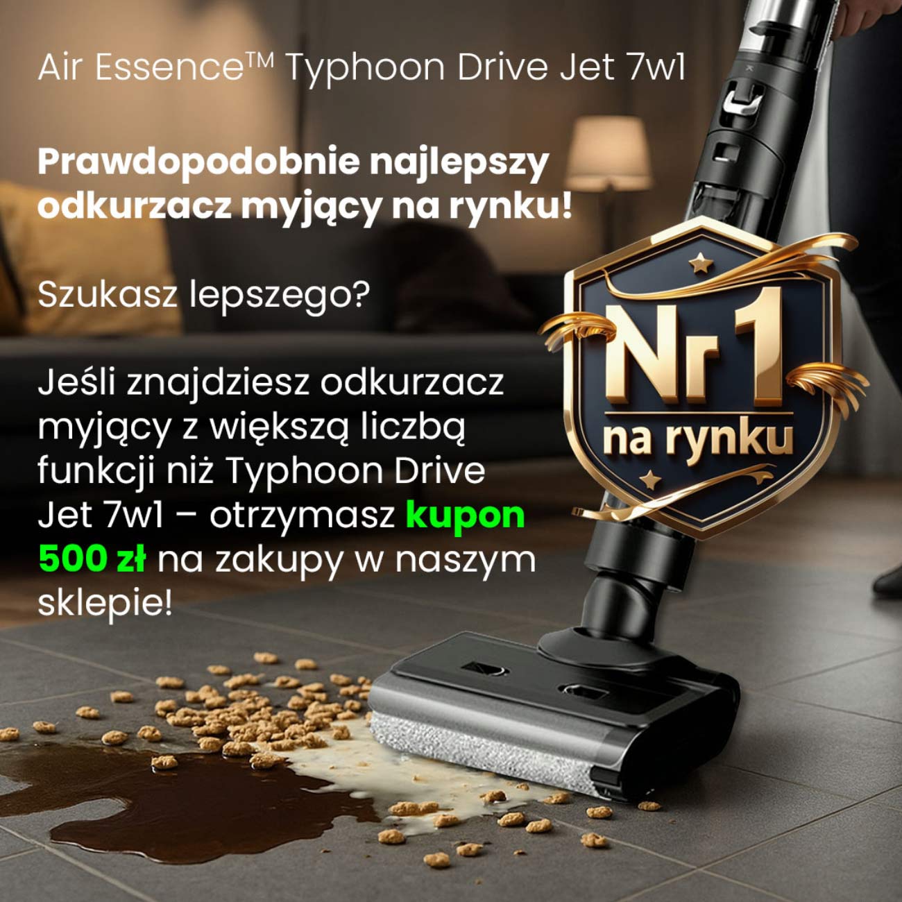 Jeśli znajdziesz odkurzacz myjący z większą liczbą funkcji niż Typhoon Drive Jet 7w1 – otrzymasz kupon 500 zł na zakupy w naszym sklepie!