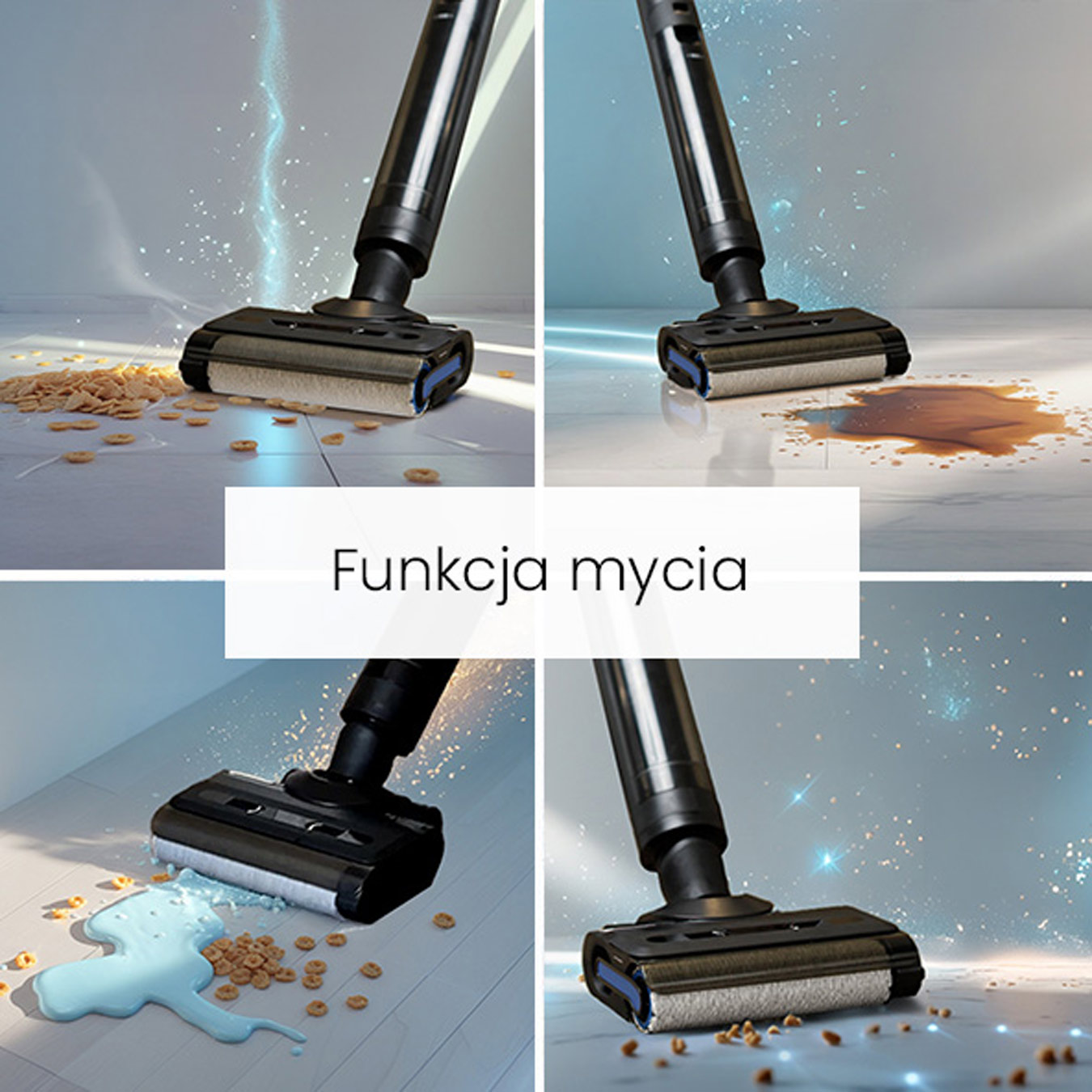 Odkurzanie: idealne rozwiązanie do usuwania płynnych zabrudzeń z podłogi. Tryb skutecznie zasysa nadmiar wody z podłogi, pozostawiając powierzchnię czystą.