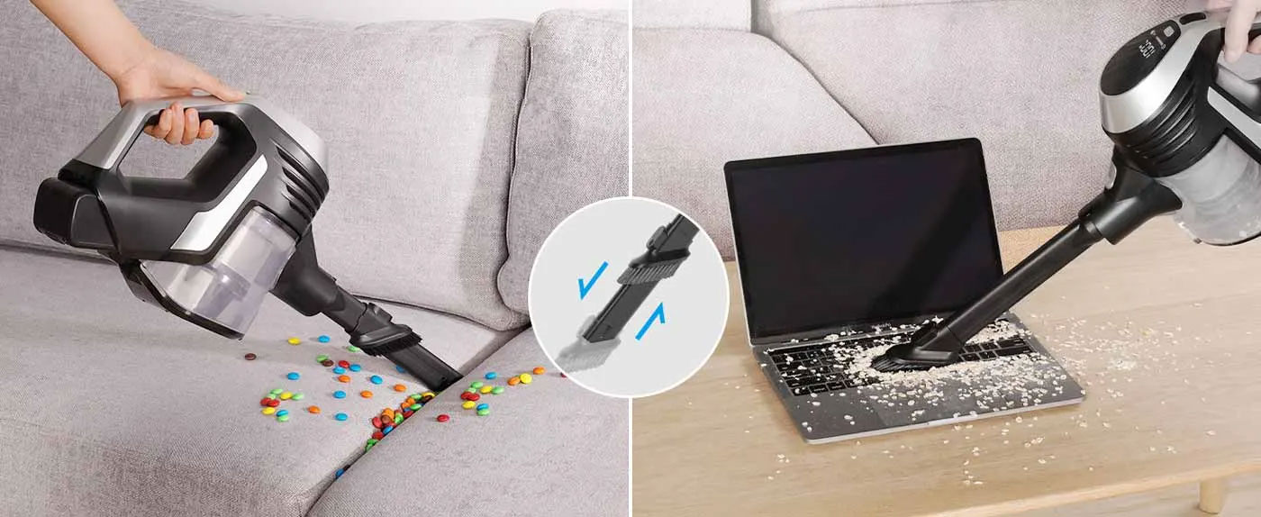 Urządzenie jest łatwe w obsłudze i może być używane przez różne grupy wiekowe, w tym osoby starsze i dzieci. Dzięki bezprzewodowej konstrukcji i niskiej wadze, odkurzacz jest łatwy do przenoszenia między różnymi pokojami, a jego ergonomiczny kształt zapewnia wygodny i bezpieczny chwyt podczas użytkowania. Ponadto, ręczny odkurzacz jest idealny dla osób z niepełnosprawnościami, takimi jak osoby na wózkach inwalidzkich, ponieważ nie wymaga dużej siły fizycznej ani skomplikowanych ruchów, a łatwo dostępne przyciski umożliwiają szybką i prostą zmianę trybu mocy i włączanie/wyłączanie bezprzewodowego odkurzacza.