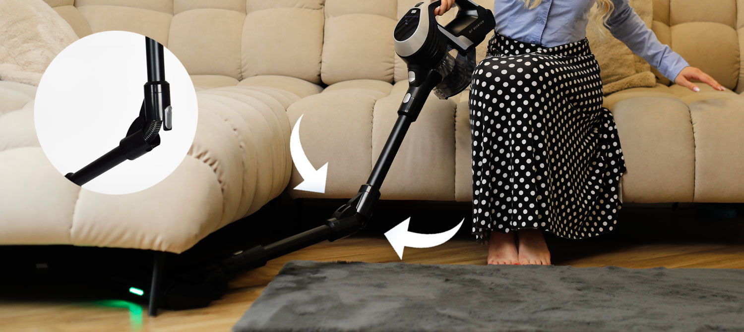 Dzięki tej funkcji możesz bez wysiłku dotrzeć do zakamarków pod meblami, narożników i innych ciasnych przestrzeni, nie musząc się przy tym zginać ani nadwyrężać pleców.