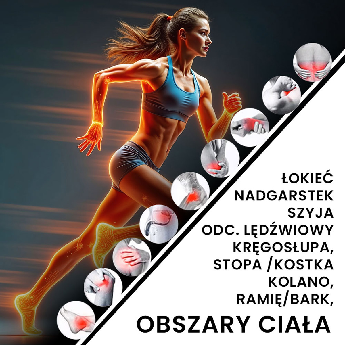 Każdy z trybów oferuje szczegółowe ustawienia dla różnych obszarów ciała, w tym m.in. kolan, bioder, ramion i brzucha.