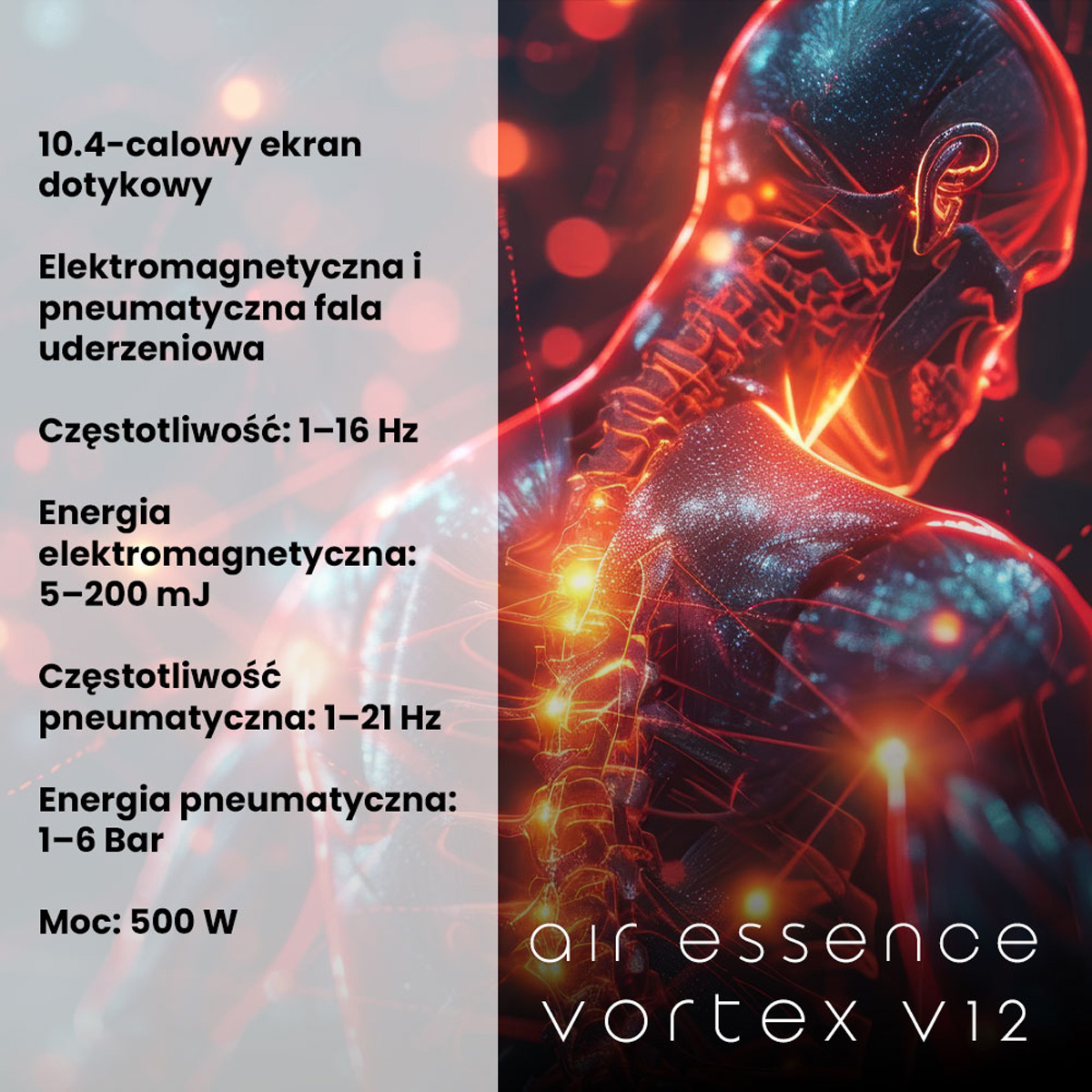 Air Essence Vortex V12 łączy technologię elektromagnetycznych i pneumatycznych fal uderzeniowych, co zapewnia maksymalną efektywność.