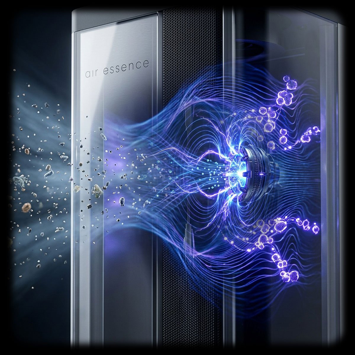 Generator plazmy Air Essence naśladuje naturalną jonizację powietrza, eliminując wirusy, pleśń i nieprzyjemne zapachy. Redukuje alergeny o 99,9%, co jest korzystne dla osób z alergiami i astmą.