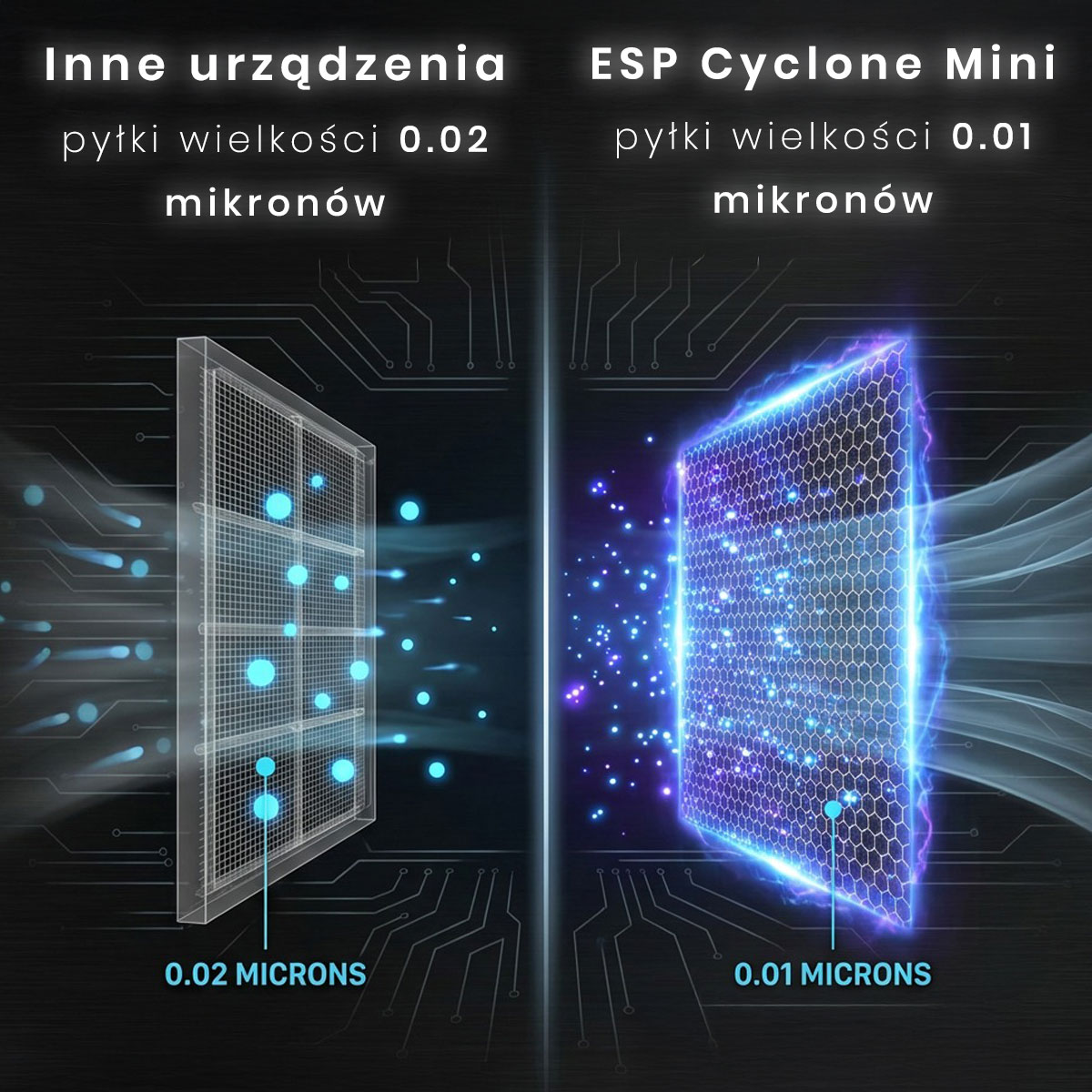 Najbardziej zaawansowana technologia na rynku oparta o grafenowy filtr elektrostatyczny ESP, którego nie musisz wymieniać – 0 kosztów eksploatacji – 100% ECO.