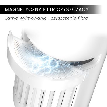 Magnetyczny filtr czyszczący pozwala na łatwe i szybkie usuwanie zanieczyszczeń oraz włosów, które mogą gromadzić się wewnątrz suszarki. Dzięki temu rozwiązaniu urządzenie pozostaje czystsze, co przekłada się na jego dłuższą żywotność oraz wydajność pracy.