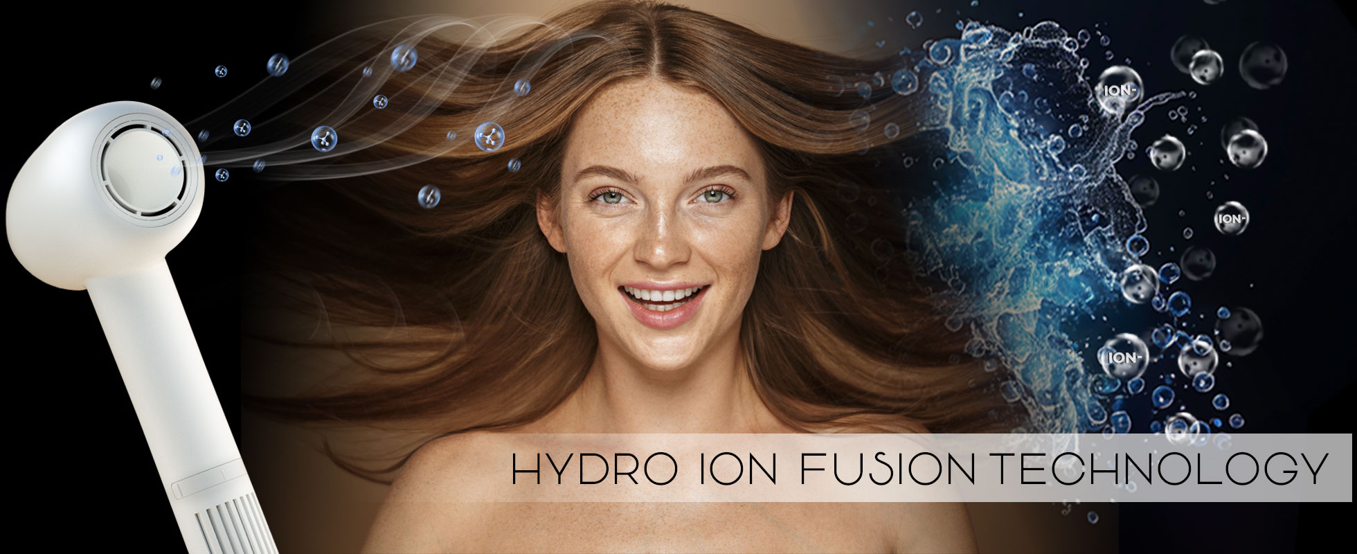 Hydro-Ion Fusion Technology jest ewolucją standardowej technologii jonizacji, która wykorzystuje połączenie jonów ujemnych i mikrocząsteczek wody, aby zapewnić głębsze nawilżenie włosów podczas suszenia. To innowacyjne rozwiązanie ma na celu nie tylko redukcję statyczności i fruwanie włosów, ale także intensywne nawilżanie włókna włosa od wewnątrz, co znacząco poprawia jego kondycję i blask.