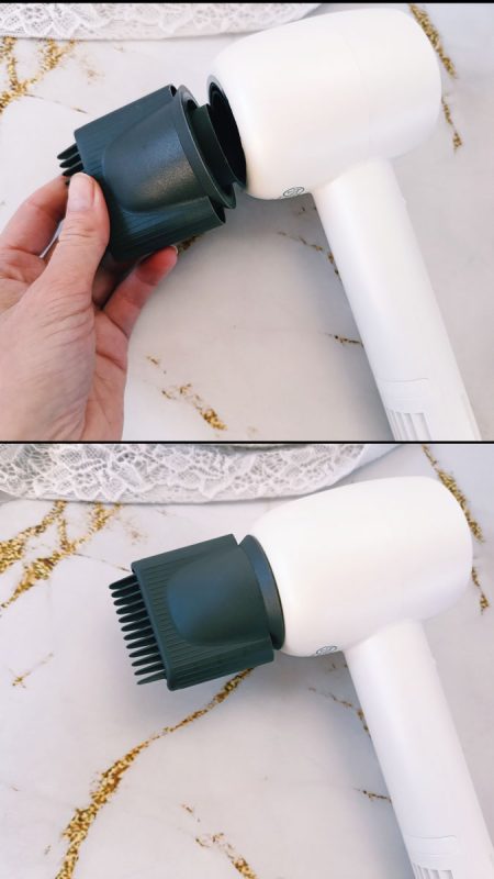 Innowacyjna dysza magnetyczna obraca się o 360°, zapewniając niezrównaną wygodę w użytkowaniu. Ta unikalna funkcja umożliwia łatwe i szybkie założenie oraz zdjęcie dyszy, co znacząco ułatwia proces stylizacji włosów. Obrotowa dysza pozwala na precyzyjne kierowanie strumienia powietrza, co jest kluczowe dla osiągnięcia idealnego efektu suszenia i modelowania fryzury.