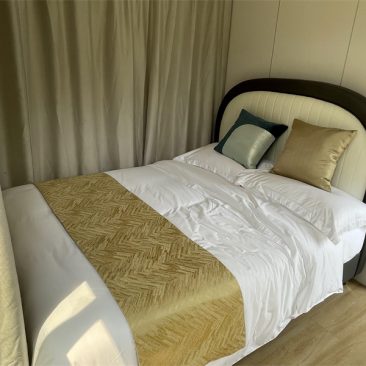Mimo kompaktowego rozmiaru, kapsuła została zaprojektowana z myślą o maksymalnej wygodzie. Przemyślany układ wnętrza obejmuje przestronny salon, przytulną sypialnię, łazienkę z prysznicem oraz balkon typu IR/S – idealny na relaks i kontakt z naturą.