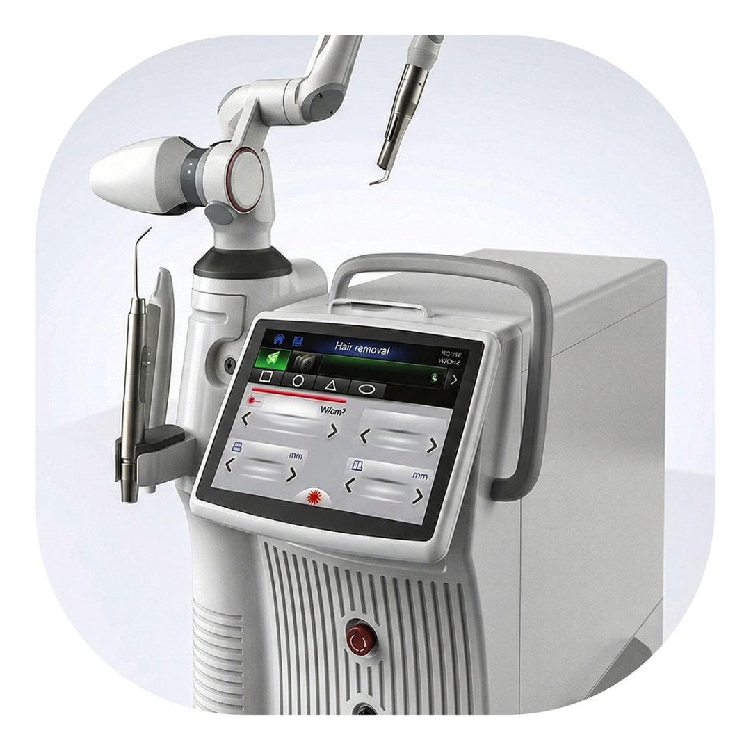 Zintegrowany panel dotykowy o wysokiej rozdzielczości umożliwia dynamiczną regulację parametrów energii oraz natychmiastowy dostęp do dostępnych trybów pracy. Interfejs został zaprojektowany w sposób przejrzysty i funkcjonalny, co pozwala na szybkie dostosowanie ustawień do specyfiki zabiegu.