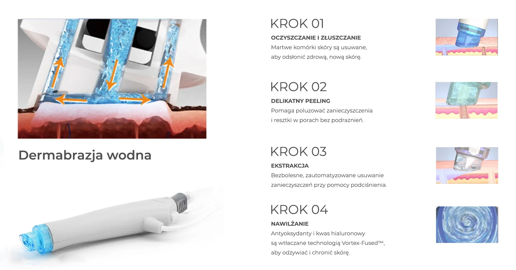 Dogłębne oczyszczenie – delikatne złuszczanie i zasysanie usuwa zanieczyszczenia, nadmiar sebum i martwe komórki naskórka, pozostawiając skórę świeżą i idealnie czystą.