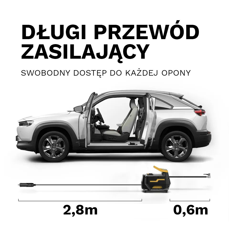 Długi przewód zasilający pozwala na swobodny dostęp do każdej opony.