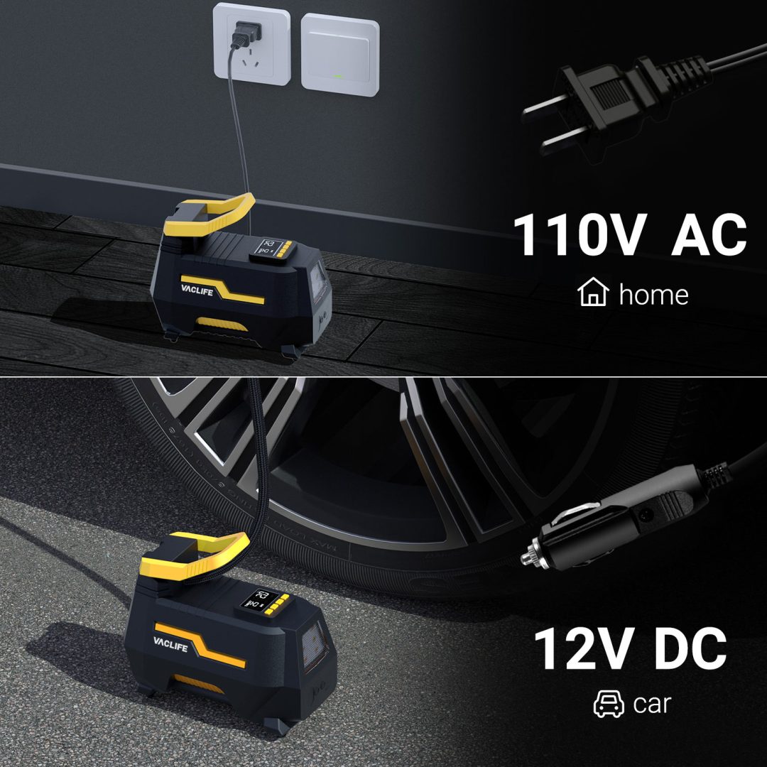 Jedno na prąd z gniazdka domowego AC 110V a drugie z zapalniczki samochodowej DC12V.