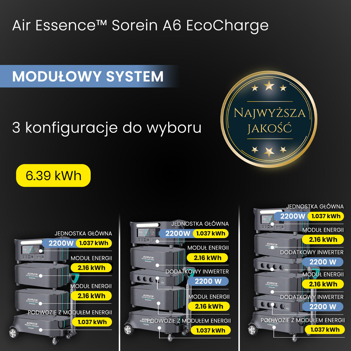 Przenośna modułowa stacja zasilania Air Essence™ Sorein A6 EcoCharge generator bank energii 6,39 kWh