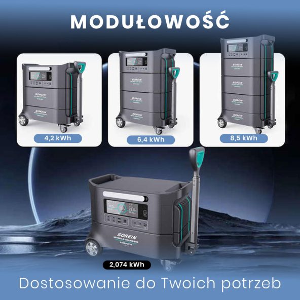 System stacji zasilania jest dostosowany do profesjonalnego użytku, oferując dużą elastyczność i możliwość dostosowania pojemności w zależności od potrzeb użytkownika.