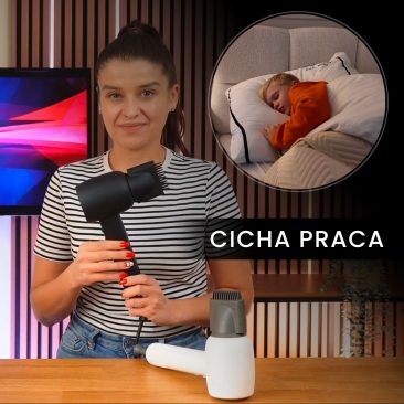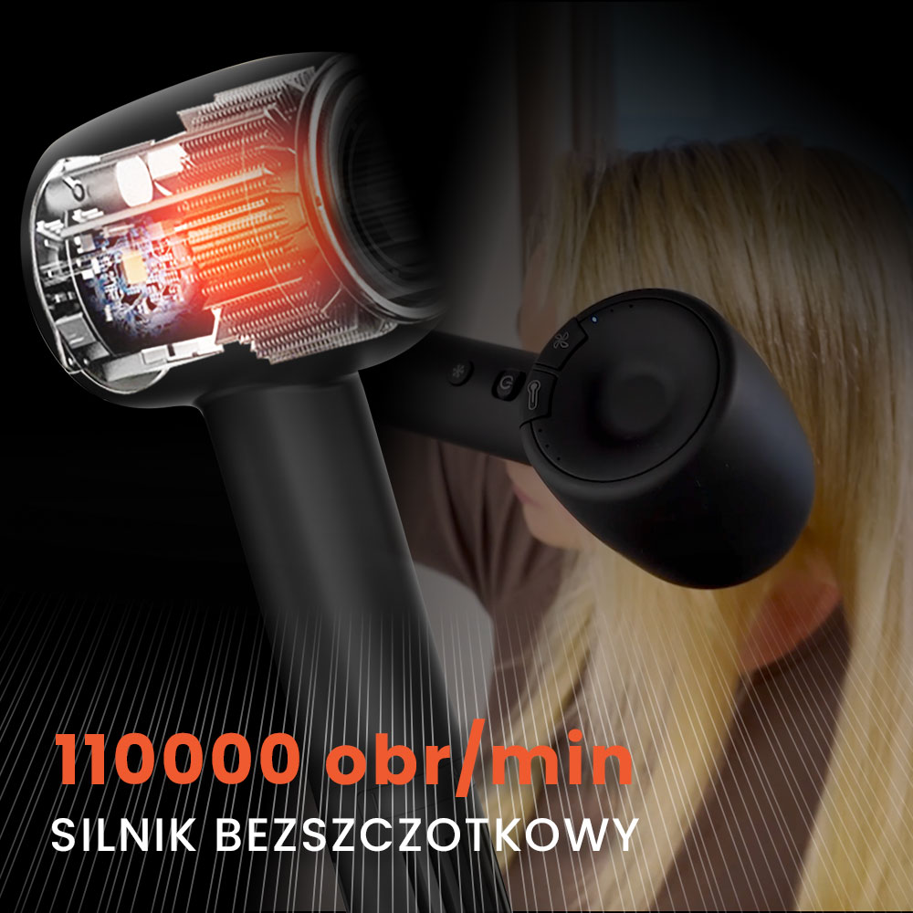 Prędkość urządzenia jest 5-6 razy większa niż w przypadku standardowych suszarek, dzięki czemu znacząco skraca czas suszenia włosów.