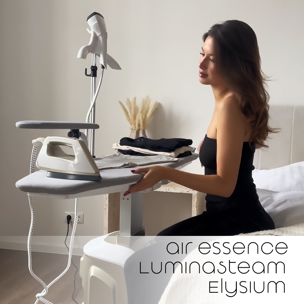 • Air Essence™ LuminaSteam Elysium Max 150 g/min - system do prasowania 2w1, parownica do ubrań, uniwersalne żelazko parowe, biały