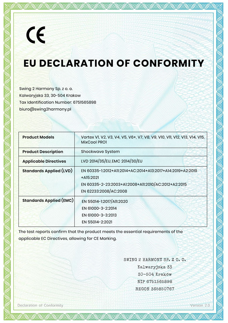 Każdy zakup fali uderzeniowej Air Essence obejmuje 2 lata gwarancji, co daje pewność długotrwałej i bezpiecznej pracy.
