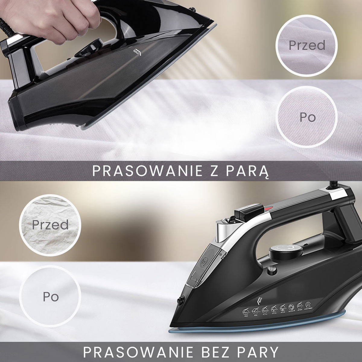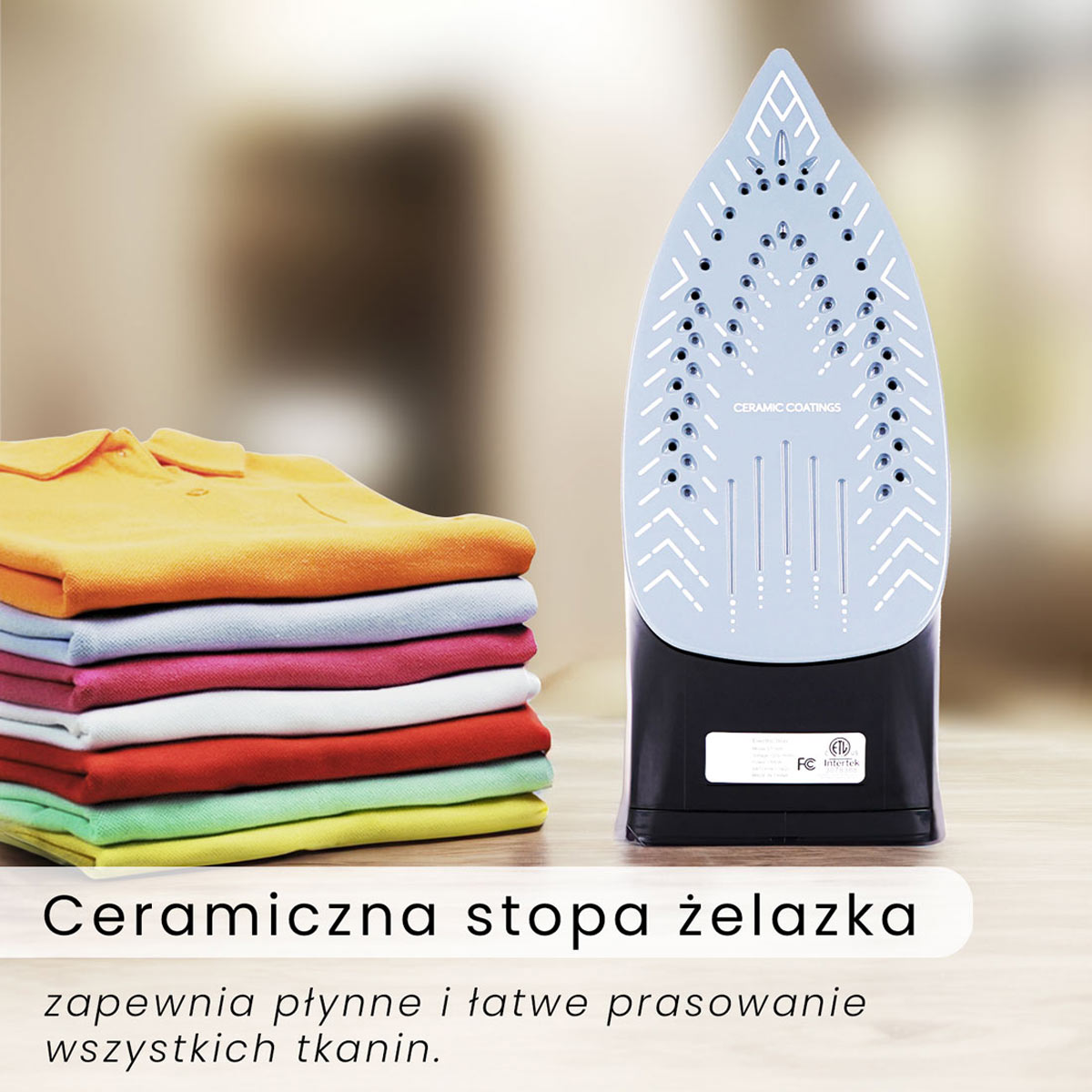 Ceramiczna stopa żelazka gwarantuje płynne i łatwe prasowanie wszystkich rodzajów tkanin. Żelazko gładko przesuwa się po materiale, minimalizując tarcie i ryzyko uszkodzenia delikatnych włókien. Ceramiczna powłoka równomiernie rozprowadza ciepło, co zapewnia precyzyjne wygładzenie nawet najbardziej opornych zagnieceń. Co więcej, dzięki odporności na wysokie temperatury, ceramiczna stopa nie przypala ubrań, nawet przy intensywnym prasowaniu.