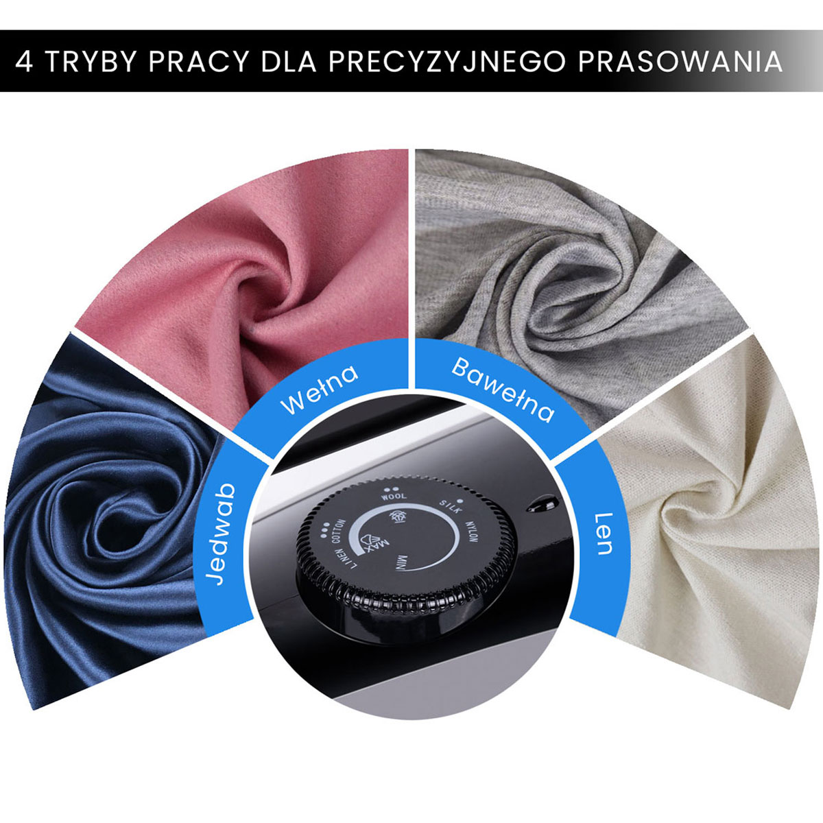 Tryb dla delikatnego jedwabiu zapewnia subtelne ciepło, które nie uszkodzi materiału, natomiast tryb dla wełny oferuje optymalną kombinację temperatury i pary, aby zmiękczyć włókna bez ich przypalenia.
